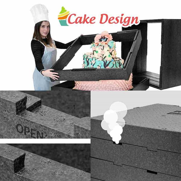 Termobox modułowy, składany, posiada system cake design, który umożliwia bezpieczny transport tortów oraz ich łatwe wyjmowanie.