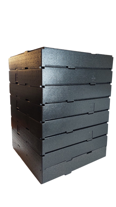- Pojemnik składa się z podstawy, 6 ramek podwyższających i pokrywy