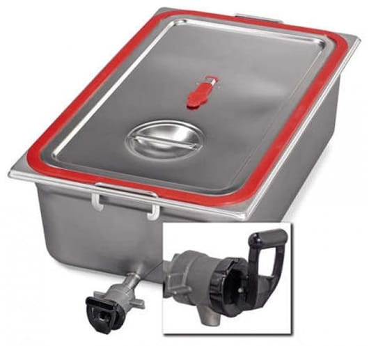 - wyposażony w pojemnik wsadowy na napoje z CNS z kranem i szczelną pokrywką